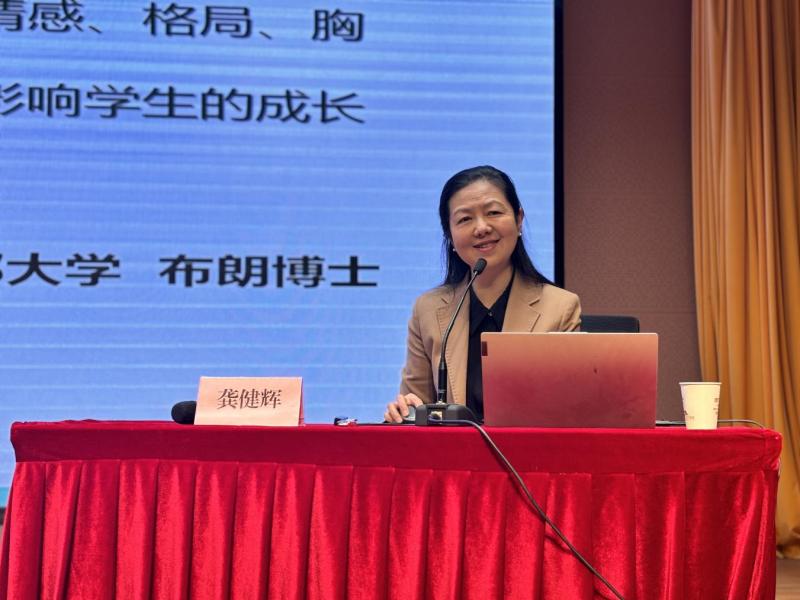 講座環節,陜西省基礎教育學科帶頭人、西咸新區灃西第一小學教育集團總校長龔健輝以《數智時代基于中國學生發展核心素養背景下教師發展》為題進行專題講座。龔健輝深耕教育一線多年,在數智教育融合、核心素養培養等領域有著深厚的理論積淀和豐富的實踐經驗。講座中,她圍繞數智時代教育變革的核心特征、《中國學生發展核心素養》及其解讀、教師的時代之“變”等方面,系統闡述了核心素養導向下教師能力提升的路徑方法、智慧校園建設的實踐案例,從技術賦能課堂教學創新、數據驅動精準育人、教師數字素養提升等多個維度,為在場教師提供了系統全面、可操作性強的專業指導。