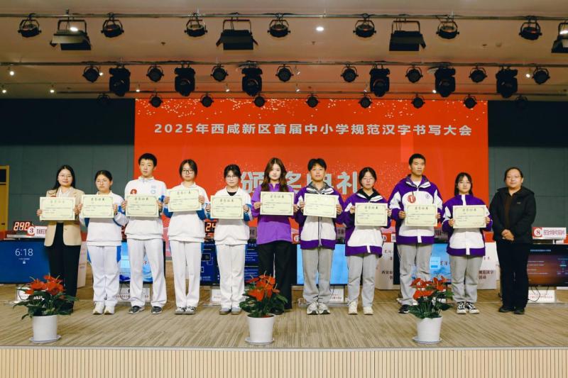 頒獎儀式上,西咸新區(qū)教育體育局相關(guān)領(lǐng)導(dǎo)為獲獎選手及參賽教師頒發(fā)榮譽證書。當(dāng)證書遞到手中時,孩子們臉上洋溢著自豪的笑容,也更深刻地體會到漢字文化的魅力。