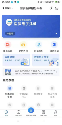 下載“國家醫保服務平臺”APP,打開后點擊“醫保電子憑證未登錄”按鈕: