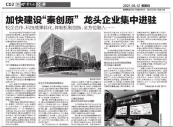 8月12日,《華商報》以《加快建設“秦創原” 龍頭企業集中進駐》為題,報道秦創原國企創新中心,原文如下: