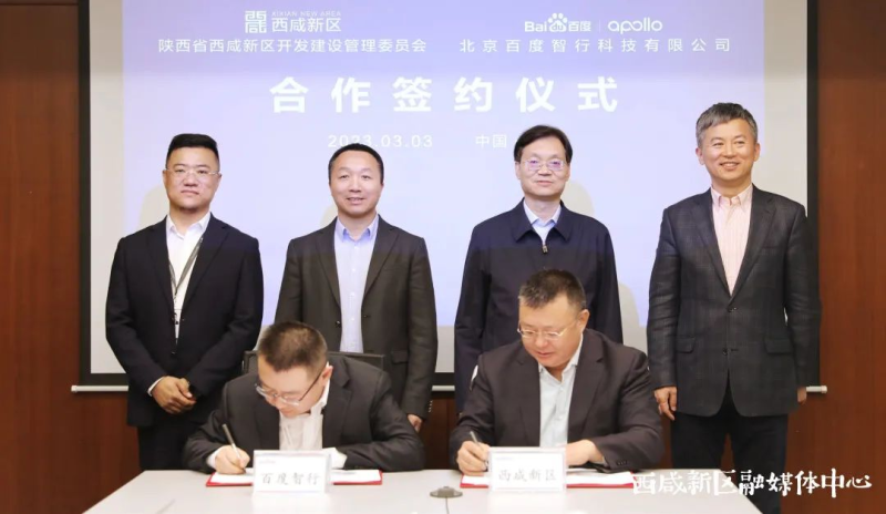 3月3日上午,西咸新區(qū)與北京百度智行科技有限公司在北京簽署合作協(xié)議。雙方將在智能網(wǎng)聯(lián)、自動駕駛產(chǎn)業(yè)方面加強合作,助力新區(qū)打造智能網(wǎng)聯(lián)汽車產(chǎn)業(yè)示范區(qū)。