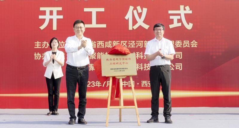 活動現場,西安市副市長孟浩,中國工程院院士、西北有色金屬研究院黨委書記、院長張平祥共同為項目“陜西省超導強磁場工程研究中心”揭牌。西咸新區黨工委副書記李嫻宣布項目開工。西咸新區黨工委委員、涇河新城黨委書記張宏偉,西部超導公司黨委書記、董事長馮勇分別致辭。涇河新城黨委副書記、管委會主任薛峰主持開工儀式。