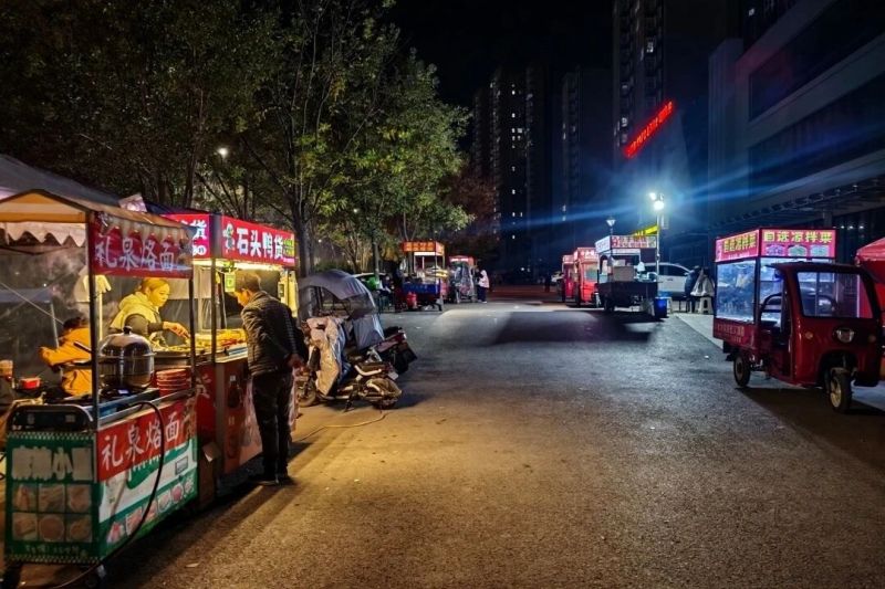 “兩個小區的占道設攤情況各有側重。”渭城街道辦事處副主任任曉穎介紹,水岸朝陽小區周邊攤點以餐飲為主,攤主多為小區居民;望賢城啟小區除餐飲攤外,還有附近村民售賣自產瓜果蔬菜。在摸清實際情況后,街道分別在望賢城啟小區東門西側和水岸朝陽小區幼兒園旁的空地劃定臨時疏導區,設置35個固定攤位,明確經營時段,引導商販規范有序經營。