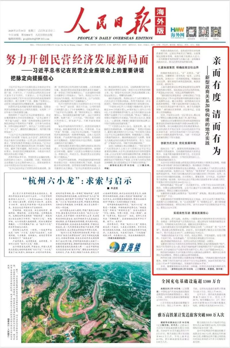 今天,《人民日報海外版》頭版、《新華每日電訊》2版刊發《親而有度 清而有為——新型政商關系加快構建的地方實踐》,報道西咸新區為重點科技企業配備法企聯絡員提供全生命周期公共法律服務幫助企業解決法律風險隱患。