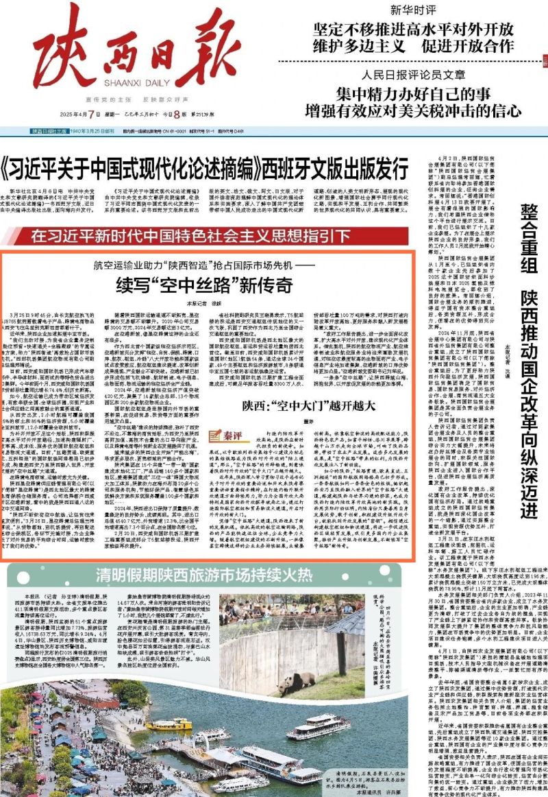 今天(4月7日),陜西日報頭版刊發《航空運輸業助力“陜西智造”搶占國際市場先機——續寫“空中絲路”新傳奇》聚焦西咸新區加快建設“空中絲綢之路新起點”,推動外向型經濟邁向新高度。