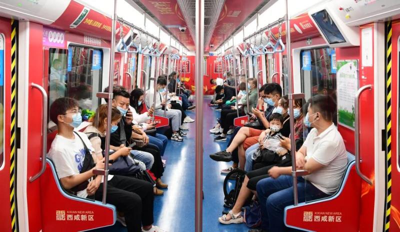 這是發(fā)生在西咸新區(qū)黨史學(xué)習(xí)教育暨慶祝建黨100周年主題專列中的一幕。為慶祝黨的百年華誕,營(yíng)造昂揚(yáng)向上、團(tuán)結(jié)奮進(jìn)的濃厚氛圍,推動(dòng)黨史學(xué)習(xí)教育深入群眾、深入基層、深入人心,西咸新區(qū)打造的這趟列車充分運(yùn)用紅色元素和豐富的黨史知識(shí),讓繁忙的地鐵車廂“變身”移動(dòng)的黨史學(xué)習(xí)教育“加油站”。