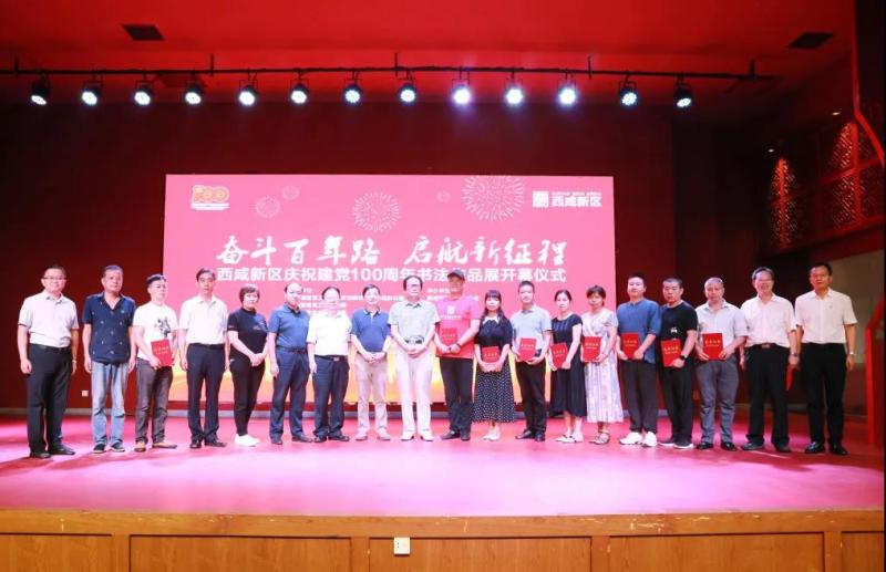 “奮斗百年路 啟航新征程”7月9日上午,西咸新區慶祝建黨100周年暨黨史學習教育書法作品展在詩經里開幕。