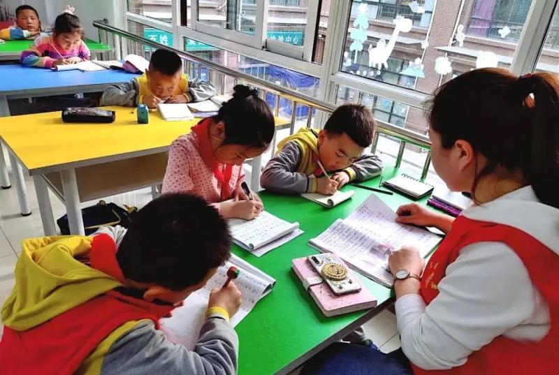 不久,9歲的趙蒙福和弟弟趙賜福興沖沖地趕到了教室,見小伙伴們還沒到齊,他們從書包里掏出作業(yè)本就寫起來(lái)。“他們都是跟著爺爺奶奶住,在這里我們能幫他們輔導(dǎo)作業(yè)。”王玲說(shuō)。