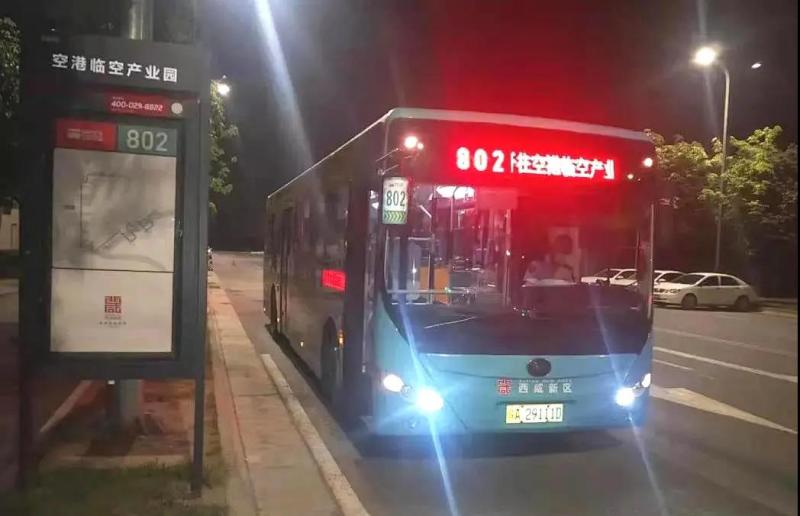 8月9日晚9點(diǎn),一輛802路公交車從西咸新區(qū)空港臨空產(chǎn)業(yè)園站點(diǎn)始發(fā),載著園內(nèi)20余名各企業(yè)員工駛進(jìn)夜色。