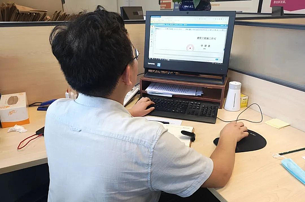 項目報建員在單位實時下載電子建筑工程施工許可證