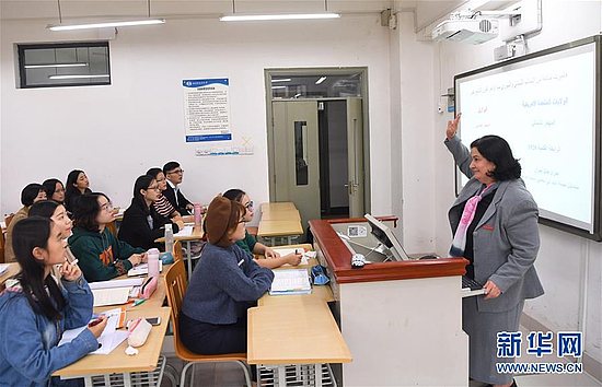 賽勒瑪·易卜拉欣在四川外國語大學(xué)給阿拉伯語專業(yè)的學(xué)生上課(10月10日攝)。新華社記者王全超攝