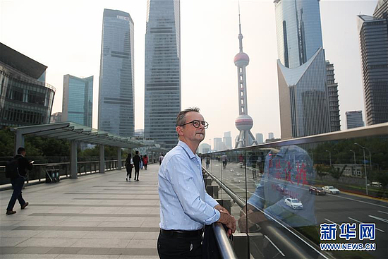 菲利普在上海陸家嘴散步(10月17日攝)。新華社記者 丁汀 攝