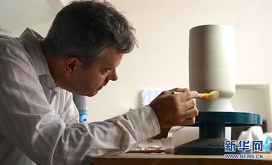 今年52歲的蓋博天來自英國倫敦,是一名凝聚態(tài)物理學(xué)博士。2012年末,曾在世界500強企業(yè)擔(dān)任高管的蓋博天辭去在新加坡的工作,和幾位陶瓷匠人來到中國,共同在江西景德鎮(zhèn)三寶瓷谷開辦陶瓷工作室。 蓋博天與伙伴們希望把西方的審美需求和景德鎮(zhèn)的制瓷工藝相結(jié)合,創(chuàng)建高端陶瓷品牌。但他們的制瓷路并不平坦,蓋博天說:“同樣的顏色在不同的溫度下燒出來的效果差異很大。我花了3年時間去試驗釉中彩餐具的發(fā)色、單色、復(fù)色、調(diào)色、配色等等。”在這個過程中,蓋博天發(fā)揮自己的物理專業(yè)優(yōu)勢,仔細記錄溫度并不斷測試,以穩(wěn)定成品質(zhì)量。 經(jīng)過多年努力,蓋博天和伙伴們的工作室已經(jīng)小有名氣,產(chǎn)品不僅遠銷英國市場,更受到業(yè)界人士的認可,在中國沿海地區(qū)的陶瓷市場擁有一席之地。未來,蓋博天和伙伴們打算做產(chǎn)品展覽,把他們的藝術(shù)理念傳遞給更多的人。 新華社記者 胡晨歡攝