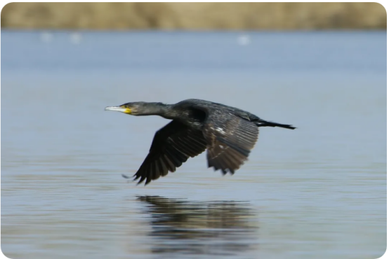 形態(tài)特征:體長(zhǎng)72-87厘米,體重大于2千克。通體黑色,頭頸具紫綠色光澤,兩肩和翅具青銅色光彩,嘴角和喉囊黃綠色,眼后下方白色,繁殖期間臉部有紅色斑,頭頸有白色絲狀羽,下脅具白斑。