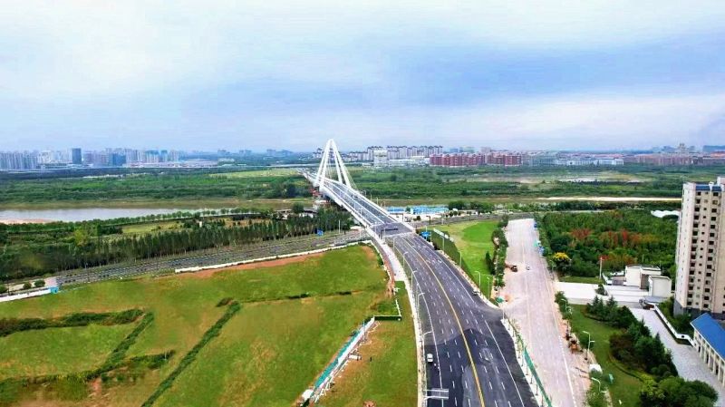 去年建成通車的咸陽渭河高新大橋連接南北兩岸,將咸陽高新區至西咸新區灃西新城的路程由以往繞行12公里縮減至直線距離2公里。