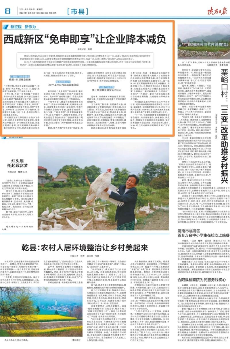近日,陜西日報刊發《西咸新區“免申即享”讓企業降本減負》聚焦新區不斷強化政策供給要素支撐,優化提升營商環境,為企業松綁、減負、加油助力西咸新區創新驅動發展。