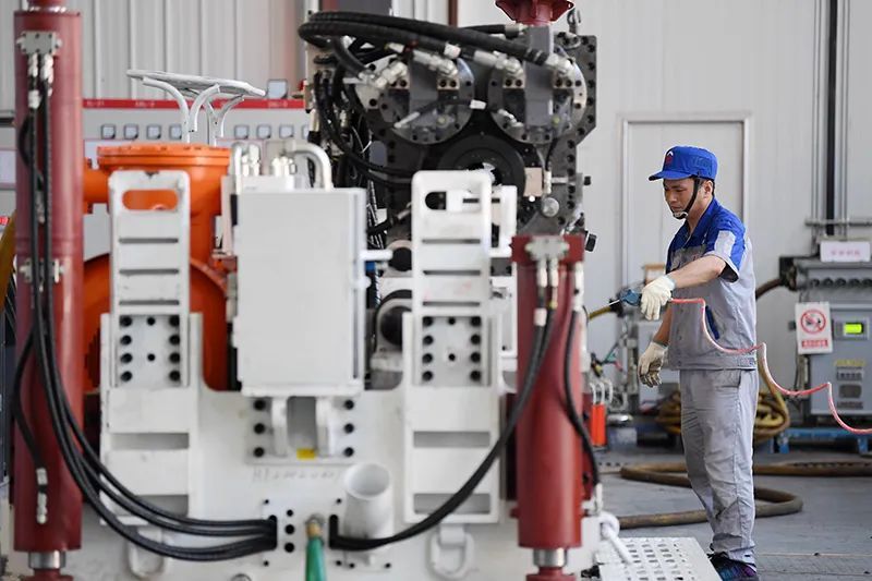 6月17日,在位于秦創原總窗口所在地陜西省西咸新區的陜西太合智能鉆探有限公司,工人準備對智能定向鉆機進行性能調試。