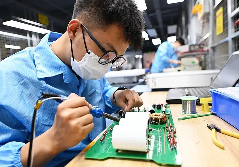 6月17日,在位于秦創原總窗口所在地陜西省西咸新區的西安威思曼高壓電源有限公司,工人在加工制作高壓電源。