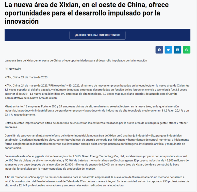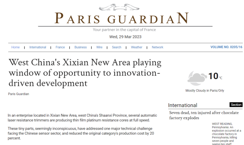 近日,全球通訊社聯(lián)盟發(fā)布文章《West China’s Xixian New Area playing window of opportunity to innovation-driven development》(西咸新區(qū):為中國(guó)西部創(chuàng)新發(fā)展打開機(jī)遇之窗)全球480多家外媒關(guān)注,截至3月29日10時(shí)總瀏覽量達(dá)到1.8億人次。
