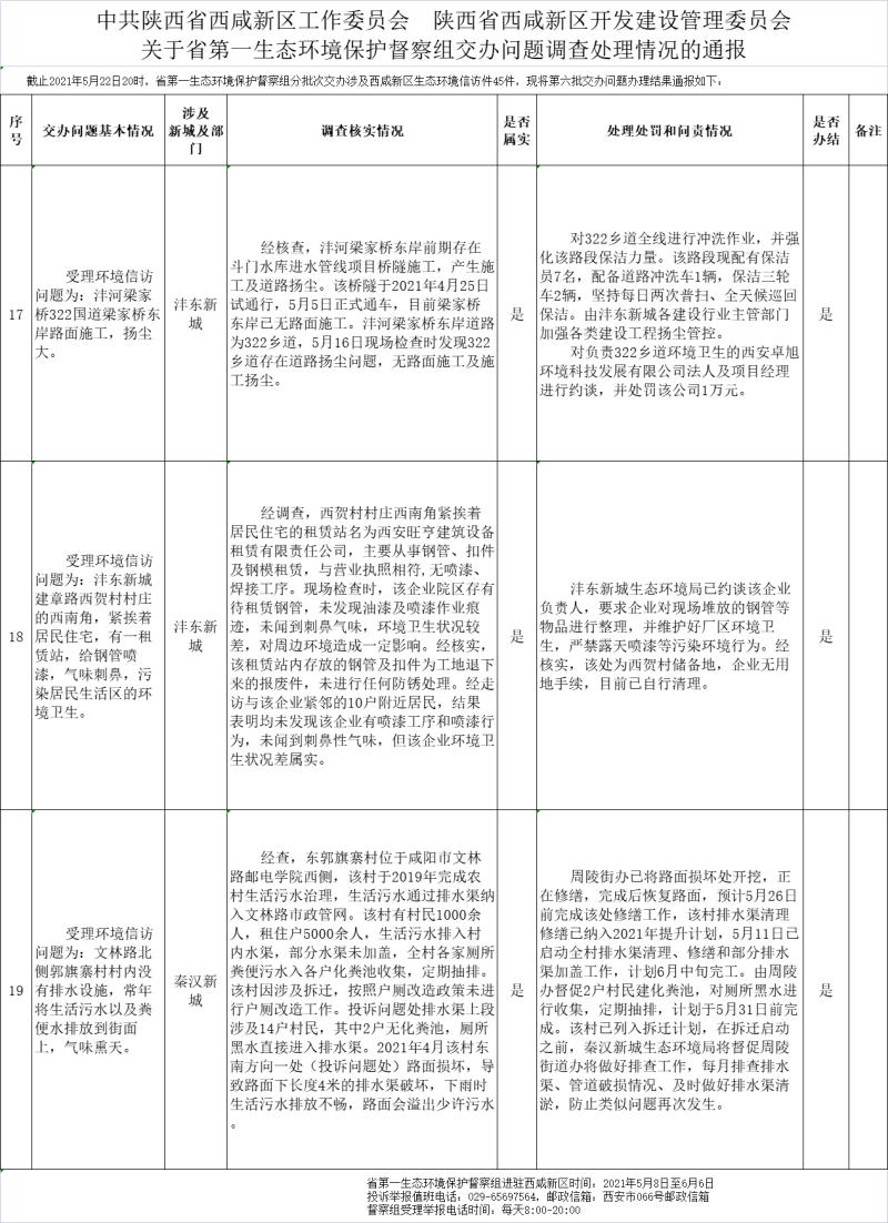 中共陜西省西咸新區(qū)工作委員會(huì) 陜西省西咸新區(qū)開發(fā)建設(shè)管理委員會(huì)關(guān)于省第一生態(tài)環(huán)境保護(hù)督察組交辦問(wèn)題調(diào)查處理情況的通報(bào)