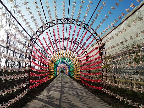 走進八興灘,數萬株綠植分布在村子各個角落,廣玉蘭、櫻花、海棠等綠植環繞的村莊顯得一片綠意融融,“村在林中,人在畫中”之感油然而生。在綠樹和具有關中民俗風情的村莊建筑掩映之中,郁郁蔥蔥的彩繪文化墻格外引人注目,整面墻由不同顏色的植物打造而成,不但富有創意,更為生活在這里的人們營造出濃厚的生態文化氣息。