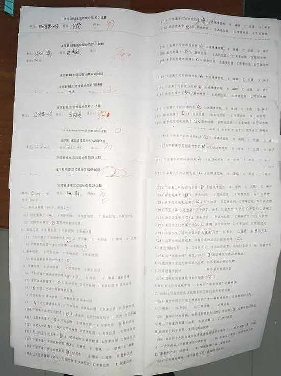 我校組織全校師生進行了“垃圾分類”知識的考試,每張試卷卷面整潔,每個人都能認真作答,加深了全體師生對“垃圾分類”知識的掌握。
