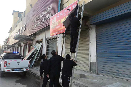 陳舊破損的戶外廣告不僅影響了市容市貌,且存在嚴重的安全隱患。為進一步加強新城戶外廣告管理,規范戶外廣告設置和發布行為,提升戶外廣告檔次,提升城市品位,助力涇河新城建設。11月19日,城市管理與交通運輸局在中心街、吉元大街路段范圍開展戶外廣告專項整治行動。