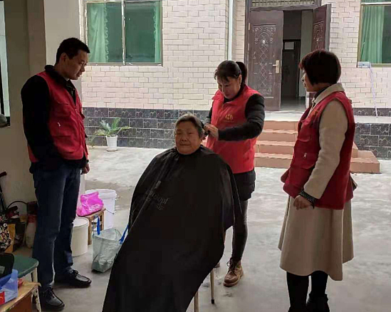 志愿者們為老人們測量血壓、血糖,做頸肩按摩、理發、修腳,打掃衛生。