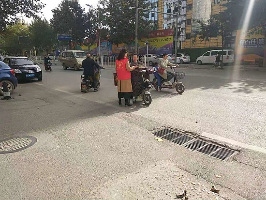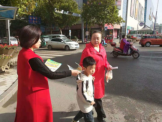 南街社區(qū)副書記帶領(lǐng)志愿者在學(xué)校門前及主要路口向過路司機宣傳車讓人宣傳活動。