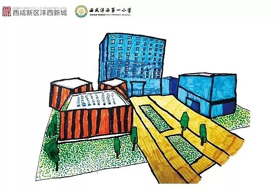 在征集階段,許多同學繪制的新城地標建筑各具特點,在豐富多樣的色彩搭配中,展現了孩子們眼中別樣的灃西之美。