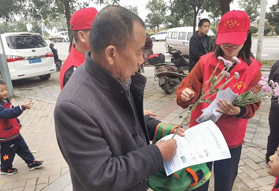 “給您一束鮮花,用它祭典您已故的親人好嗎?”在寒衣節即將來臨之際,空港新城北杜街道志愿服務隊在轄區村、社區和龍華陵園向需要祭祀已故親人的群眾免費送鮮花,倡導文明的祭祀方式。