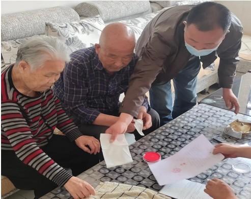 緊接著,工作人員跟隨何先生一同前往老人家中,在貼心地詢問了老人的健康和生活情況后,按照補辦程序,審驗兩位老人的相關證件,核實當事人身份信息、補證材料,高效完成補證登記的相關手續。