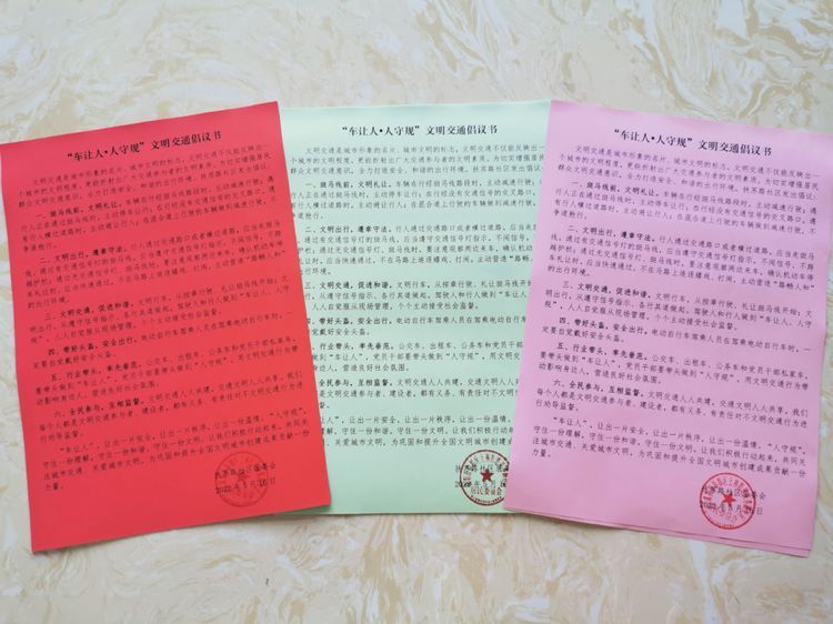 一是通過在社區(qū)宣傳欄張貼文明交通宣傳頁,在社區(qū)樓棟長和居民微信群內(nèi)向轄區(qū)居民發(fā)出文明交通“車讓人·人守規(guī)”活動倡議書,以提高居民的交通文明意識、法治意識、安全意識,倡導“車讓人,人守規(guī)”的文明出行方式。