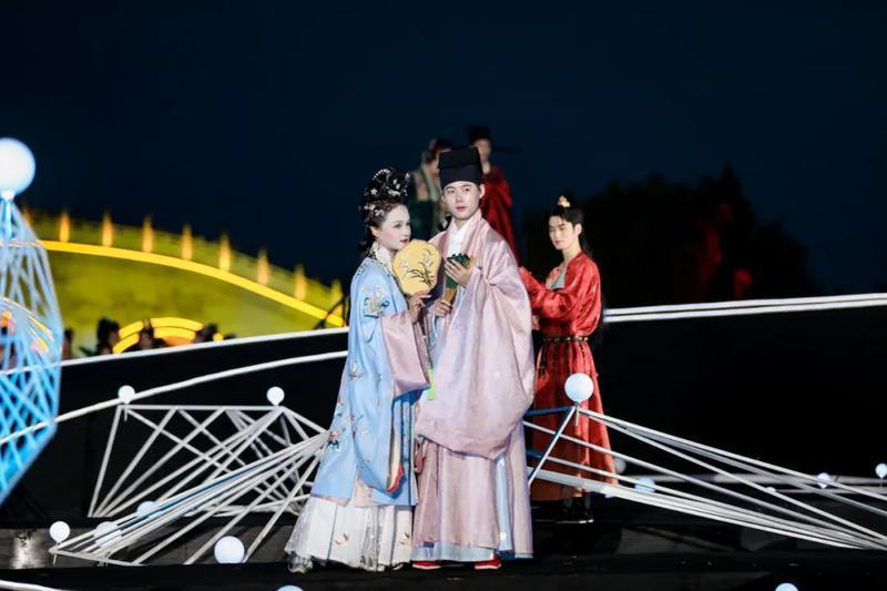 七夕當晚,昆明池·七夕公園在東草坪轉播央視七夕晚會特別節目,打破傳統文化與現實科技的壁壘,為游客帶來一場傳統與潮流相碰撞的視聽盛宴。昆明池·七夕公園已連續多年成為央視七夕晚會錄制地,為景區打造浪漫新地標、愛情打卡地及七夕文化品牌起到重要推動作用,并推動了西咸新區和灃東新城文化旅游融合發展。