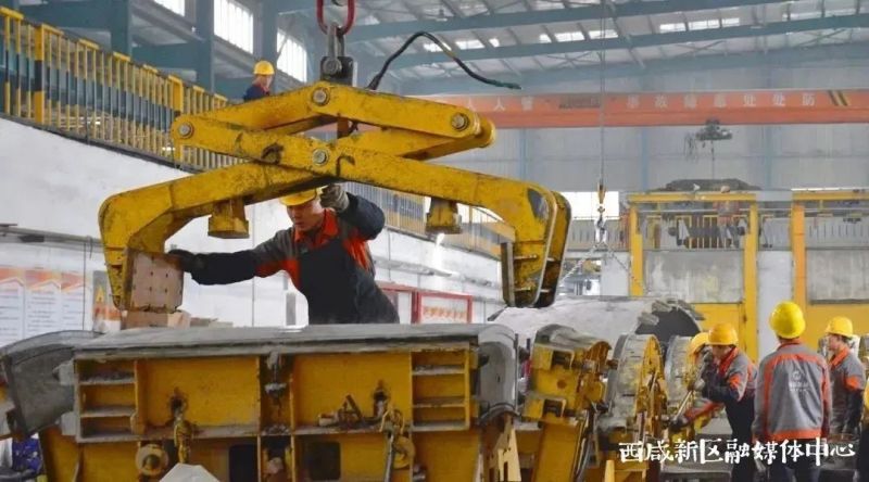 在園內國家裝配式建筑產業基地落戶的陜西凝遠新材料科技股份有限公司(以下簡稱“凝遠新材料”),承擔著西安地鐵8號線6000余環管片的交貨任務。該公司的構件車間擁有西北第一家自動化地鐵管片流水生產線,為保證8號線順利建設,生產線一直在開足馬力趕生產。