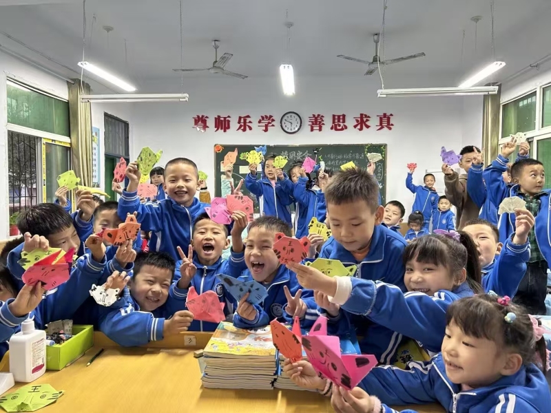 五年來,靳雪婷將校園東邊的空地精心打造成“露天美術教室”。在這里,孩子們用樹枝在泥地上勾勒“田埂迷宮”,看著螞蟻沿著線條爬行,興奮地呼喊“它在走我的迷宮”;撿來的楓葉被拼成靈動的“紅蝴蝶”,學生小雨許下心愿,要讓這只“蝴蝶”飛到北京;“星星燈”課堂上,小宇即便手被麥秸劃破,仍堅持為妹妹制作星星燈,傍晚時分,幾十盞麥秸星星燈掛在窗外,月光灑落,映著孩子們數星星的笑臉。