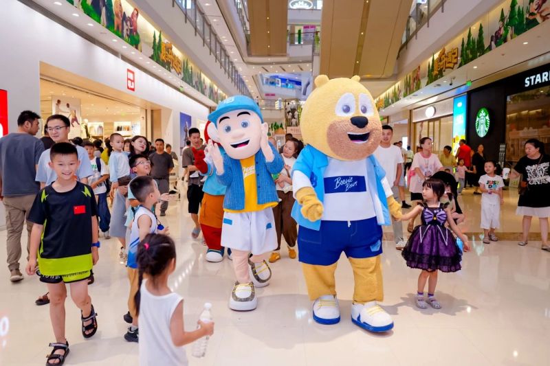 一進商場就像掉進童話書:迷霧洞穴、古樹迷蹤、熊熊夢境、寶藏樹堡、螢火蟲營地帶你秒穿童話世界;每周五至周日,熊大熊二、光頭強現場互動送周邊,戶外冰品節、水果嘉年華適合全家出動。