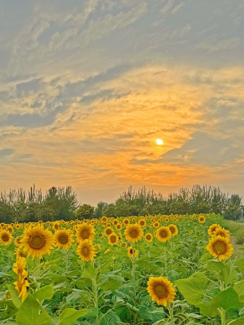傍晚17:00-19:00:夕陽為向日葵鍍上金邊,逆光下的花瓣像浸了油畫顏料,拍“落日與花同框”的場景,浪漫感直接拉滿。