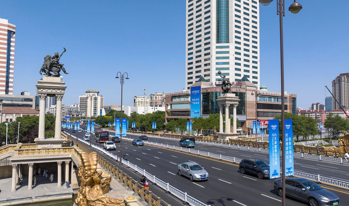 ?天津市大光明橋道路兩旁路燈上懸掛著2025夏季達(dá)沃斯論壇宣傳標(biāo)語(yǔ)(6月21日攝)。