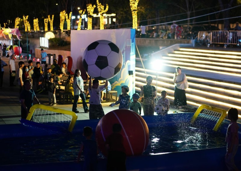 8月17日,在江蘇南京舉行的2025江蘇省城市足球聯(lián)賽第九輪比賽中,南京隊(duì)對陣鹽城隊(duì)。南京市在部分商場、街區(qū)等地設(shè)置觀賽“第二現(xiàn)場”,使用大屏幕同步直播賽事,同時(shí)設(shè)有游戲互動(dòng)區(qū)、煙火市集區(qū),讓球迷們度過歡樂時(shí)光。新華社記者 季春鵬 攝