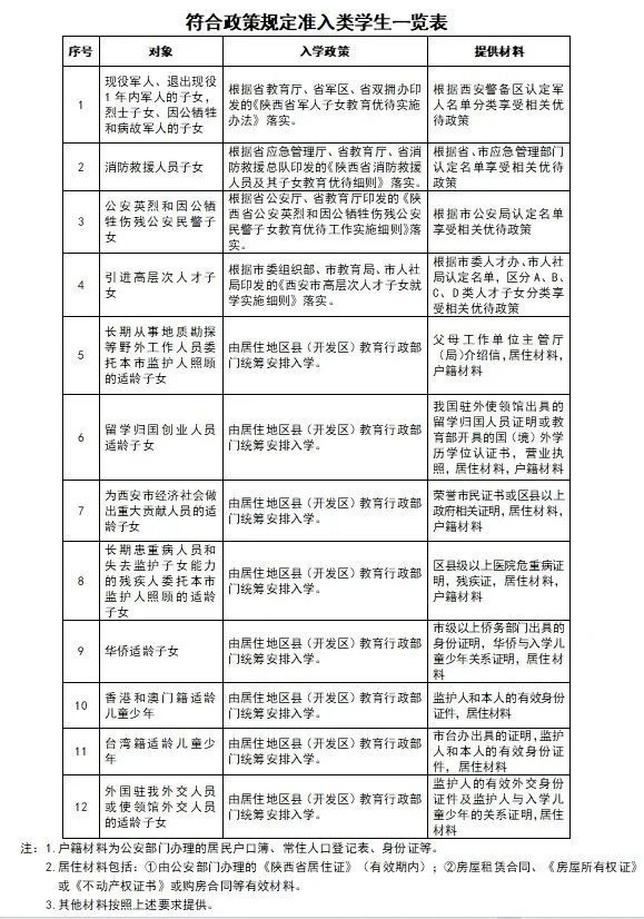 2018年8月31日(含8月31日)以前出生的西安市戶籍適齡兒童、符合入學條件的隨遷子女、符合政策規定準入類學生。
