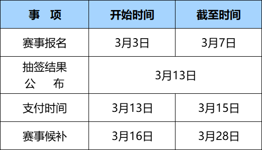 接受候補(bǔ)排隊(duì)的未中簽運(yùn)動(dòng)員也需要在2025年3月15日(星期六)22:00前支付報(bào)名費(fèi)。否則視作自動(dòng)放棄候補(bǔ)機(jī)會(huì),候補(bǔ)序號(hào)不予保留。