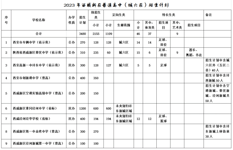 按照西安市教育局關于印發《西安市2023年初中學業水平考試與高中階段學校招生工作意見的通知》要求,在各學校上報招生計劃的基礎上,現核準下達陜西省西咸新區2023年普通高中招生計劃(見文末附件),請遵照執行,并就有關事項通知如下。