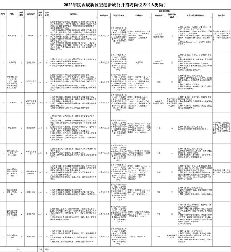 7.應聘人員除符合上述基本條件外,還須符合附件1《2023年度西咸新區空港新城公開招聘崗位表》的相應崗位任職條件。放寬條件以《2023年度西咸新區空港新城公開招聘崗位表》為準。