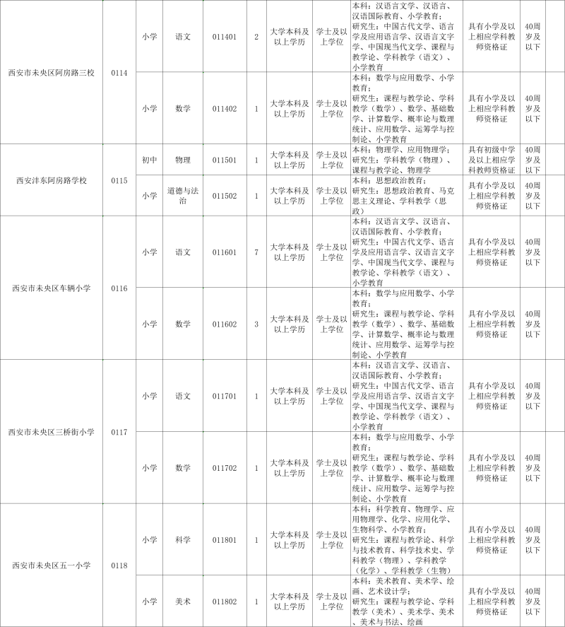 5.具有招聘崗位所需的學歷、專業或技能條件。其中,學歷為國家教育行政主管部門認可的本科及以上文化程度;專業以國家教育行政主管部門公布的研究生、本科專業目錄為準(詳見《西咸新區2024年教育系統公開招聘崗位需求一覽表》。學歷、學位證書須于2024年7月31日前取得。若未能取得學歷、學位證書或審驗不通過的,取消聘用資格。
