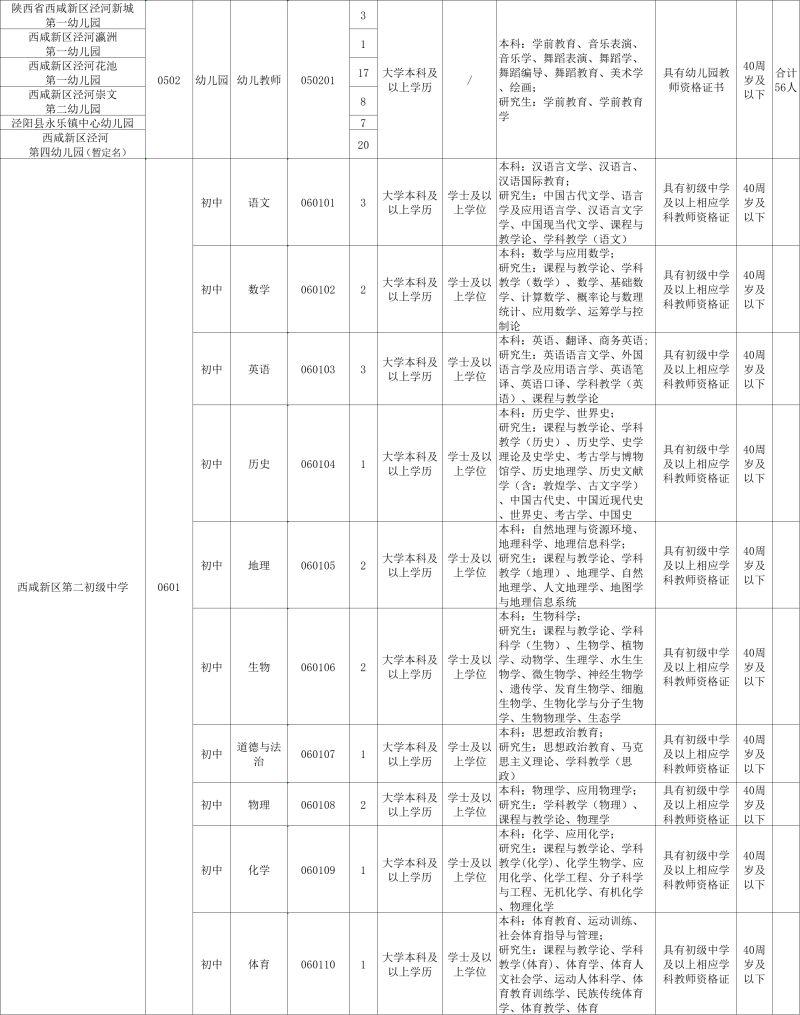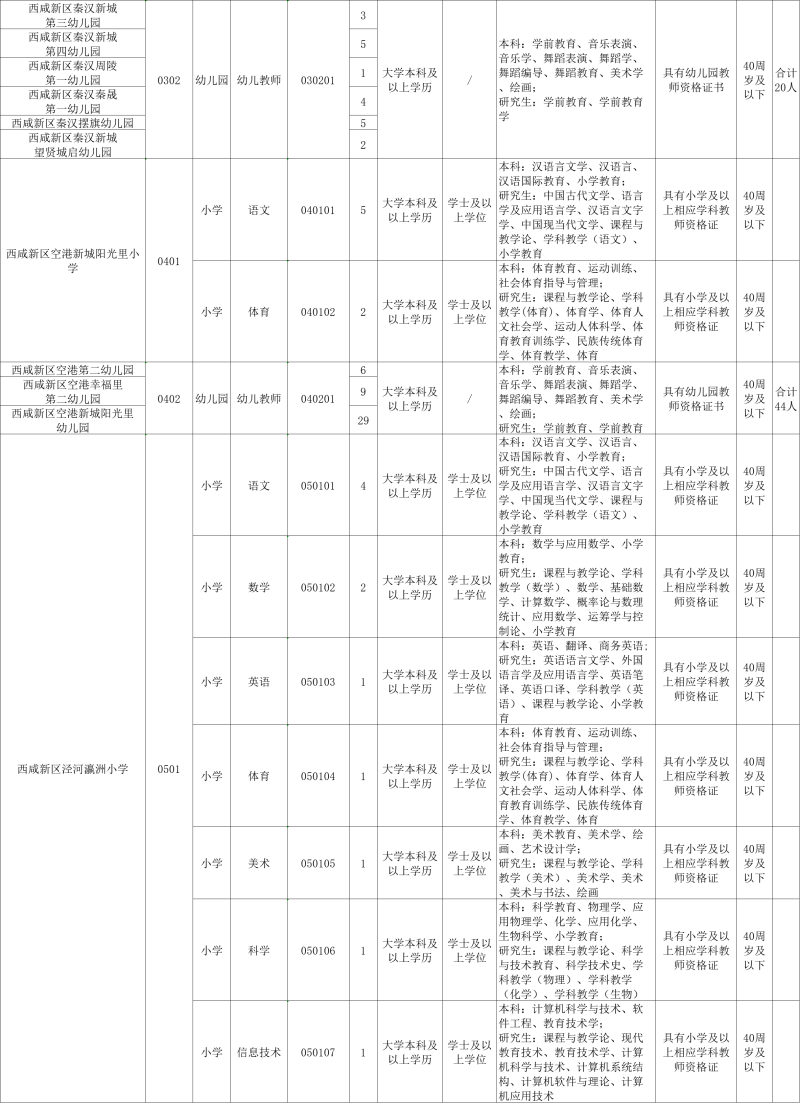 西咸新區2024年教育系統公開招聘崗位需求一覽表