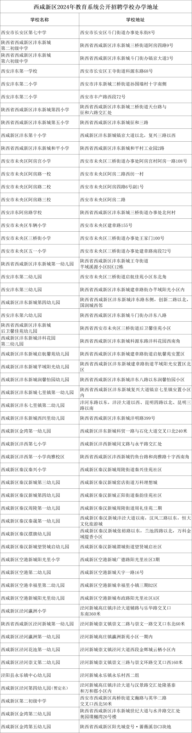 西咸新區2024年教育系統公開招聘學校辦學地址