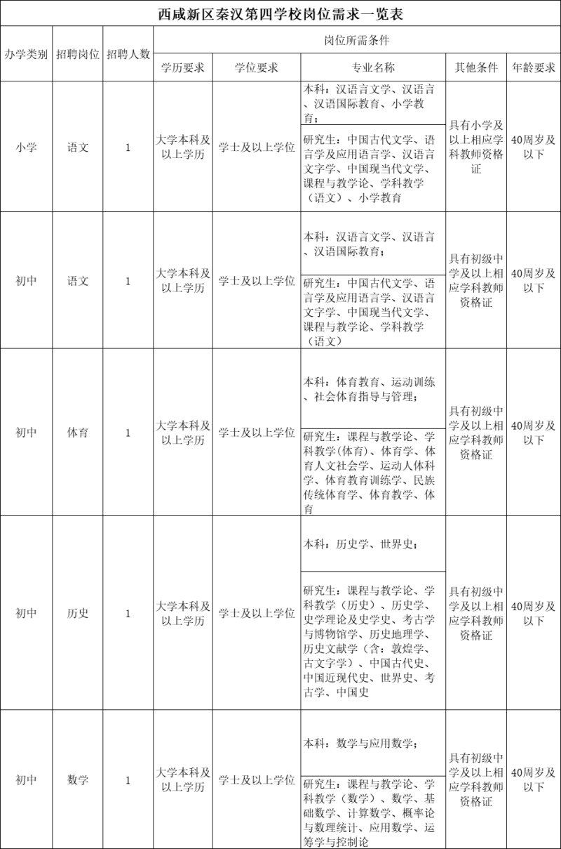 近日,西咸新區四所學校發布招聘公告,具體如下。