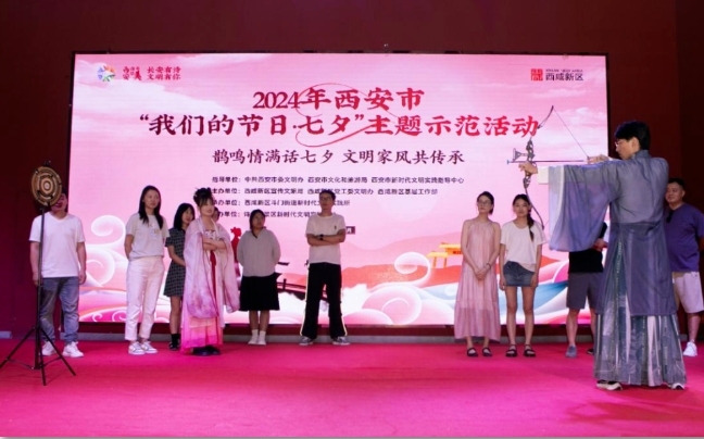 8月8日,“鵲鳴情滿話七夕 文明家風共傳承”——2024年西安市“我們的節日·七夕”主題示范活動在西咸新區詩經里景區舉辦。