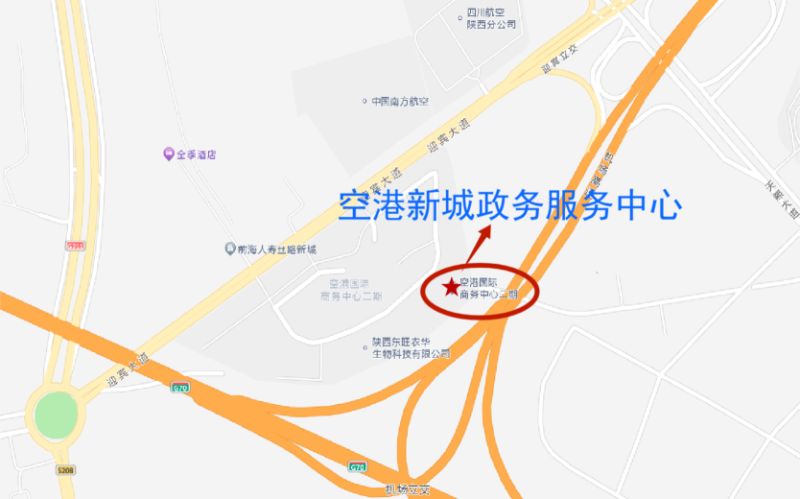 ②乘坐地鐵1號線至“灃河森林公園”站,下車后乘坐1080路公交在“空港新城政務服務中心”站下車。